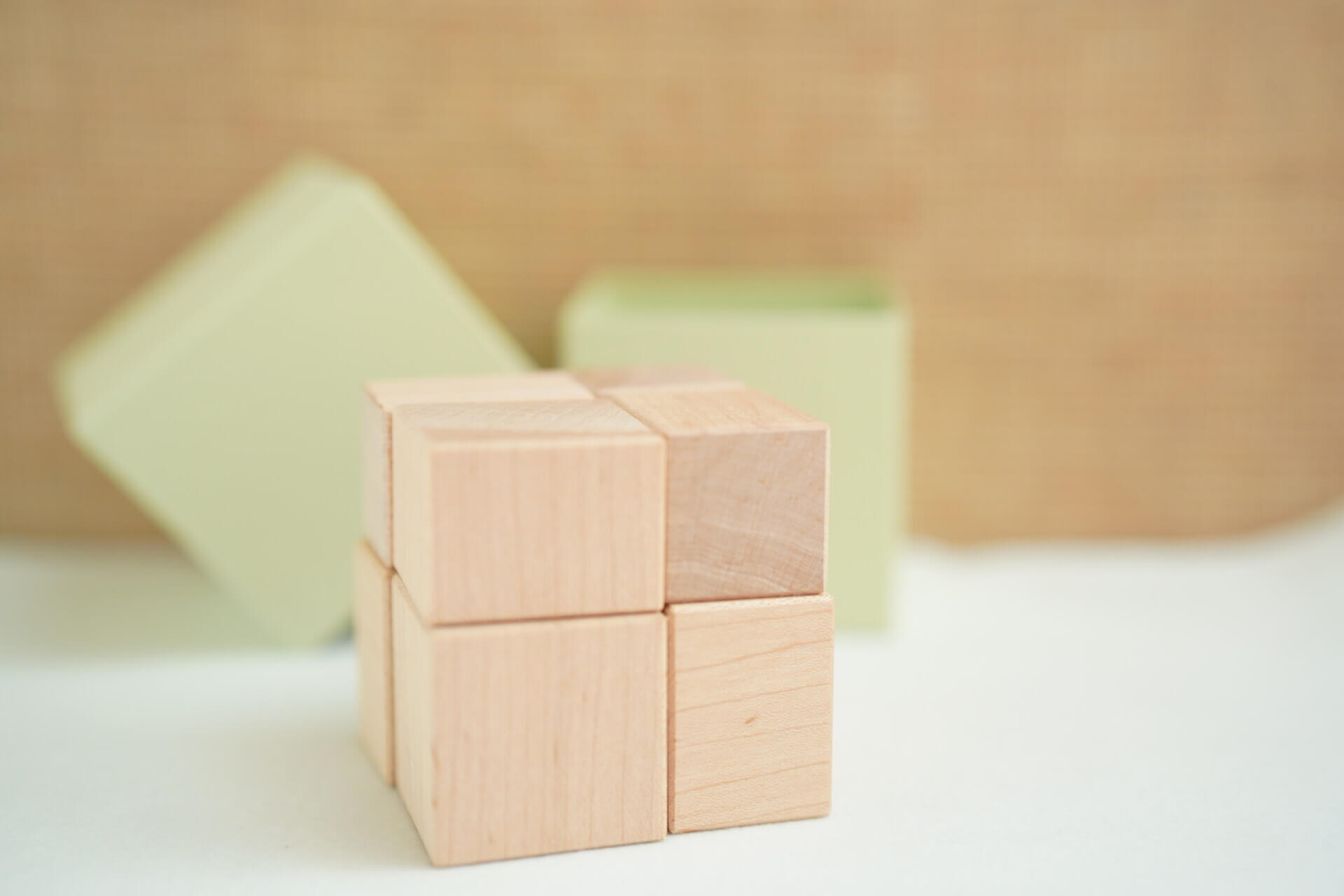 がどのように組み合わさって一つの大きな立方体になるのかを、実際に手で触れ、目で見て体験することができます。
